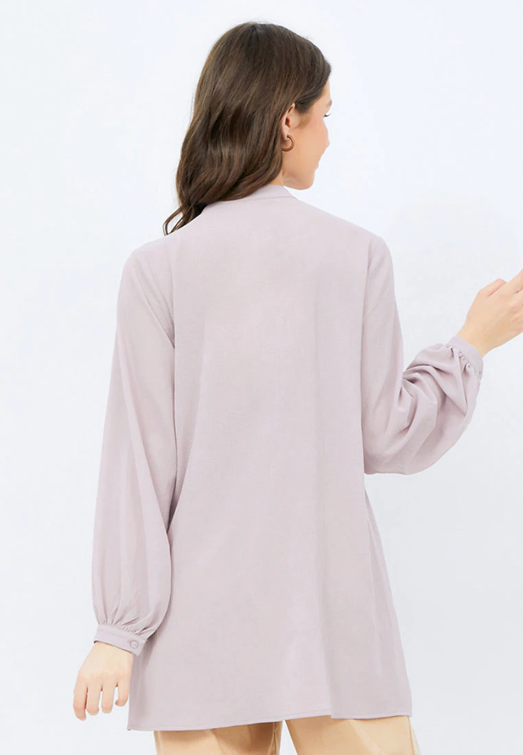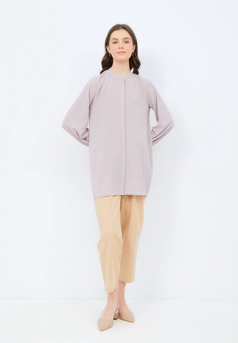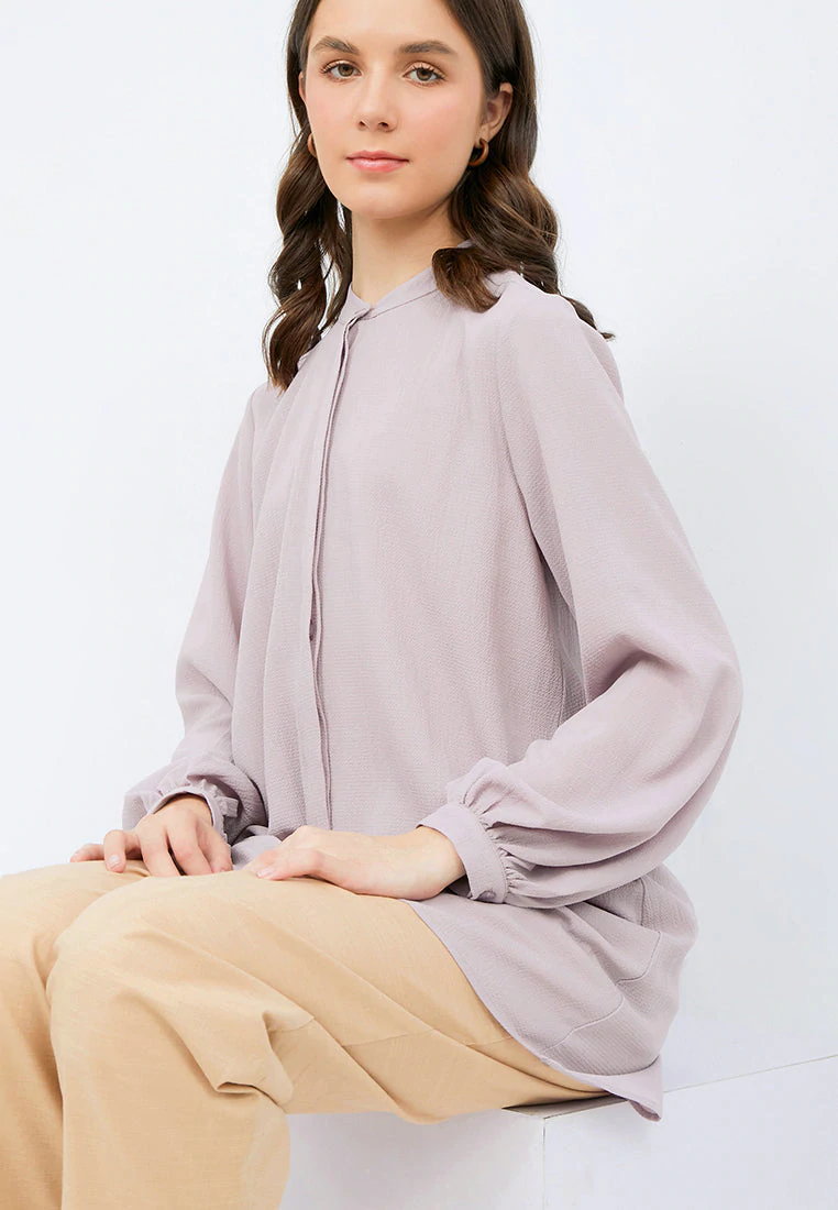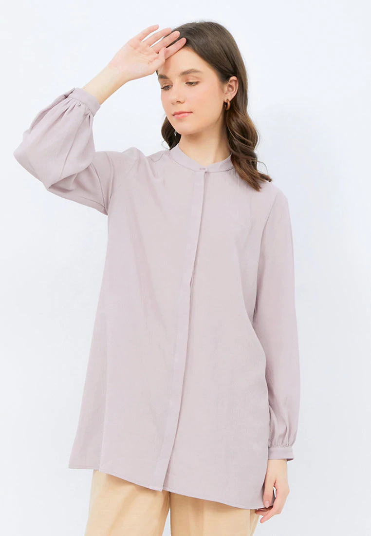 Tunic lengan panjang, Puff sleeves detail, Mandarin collar, Front button opening,